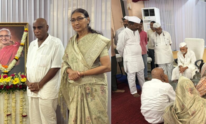 जळगाव -स्व. गोदावरी आई पाटील यांच्या दु:खद निधनानंतर राज्यभरातून पाटील कुटुंबाचे सांत्वन केले जात आहे. शुक्रवारी १२ रोजी श्री शिवप्रतिष्ठान हिंदुस्थान संघटनेचे संस्थापक संभाजी भिडे गुरूजी यांनी माजी खा. डॉ. उल्हास पाटील, डॉ. वर्षा पाटील, सुभाषदादा पाटील यांची भेट घेऊन त्यांचे सांत्वन केले. तसेच केंद्रीय राज्यमंत्री रक्षाताई खडसे यांनीही स्व. गोदावरी आई यांना अभिवादन करीत पाटील परिवाराचे सांत्वन केले. याप्रसंगी डॉ. केतकी पाटील, डॉ. वैभव पाटील यांच्यासह परिवारातील सदस्य उपस्थित होते.